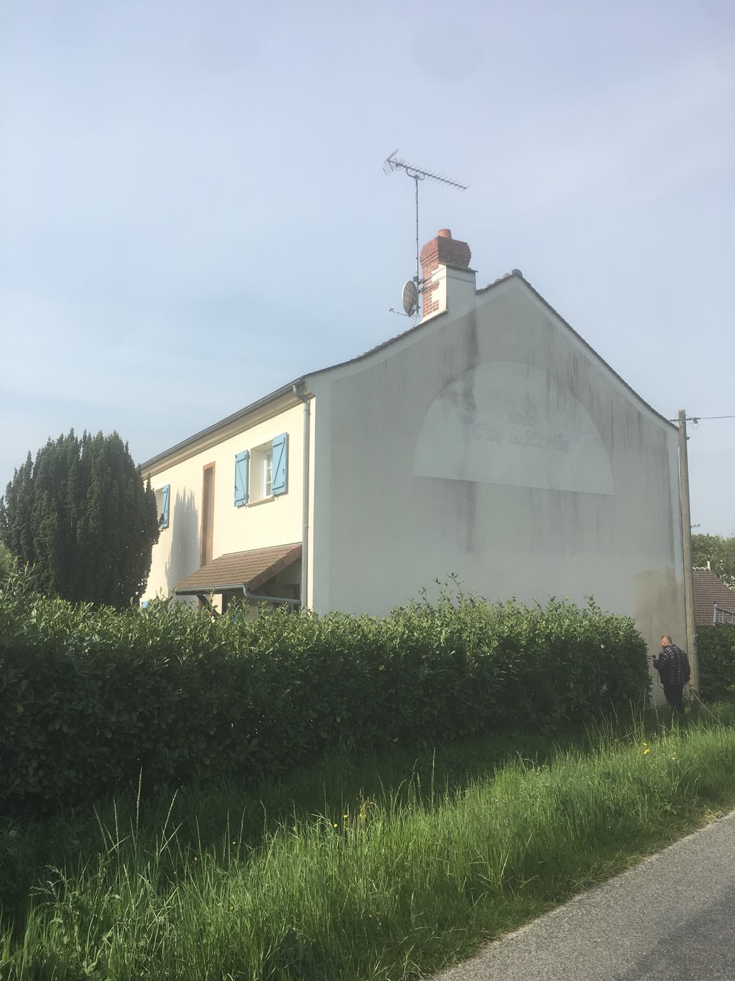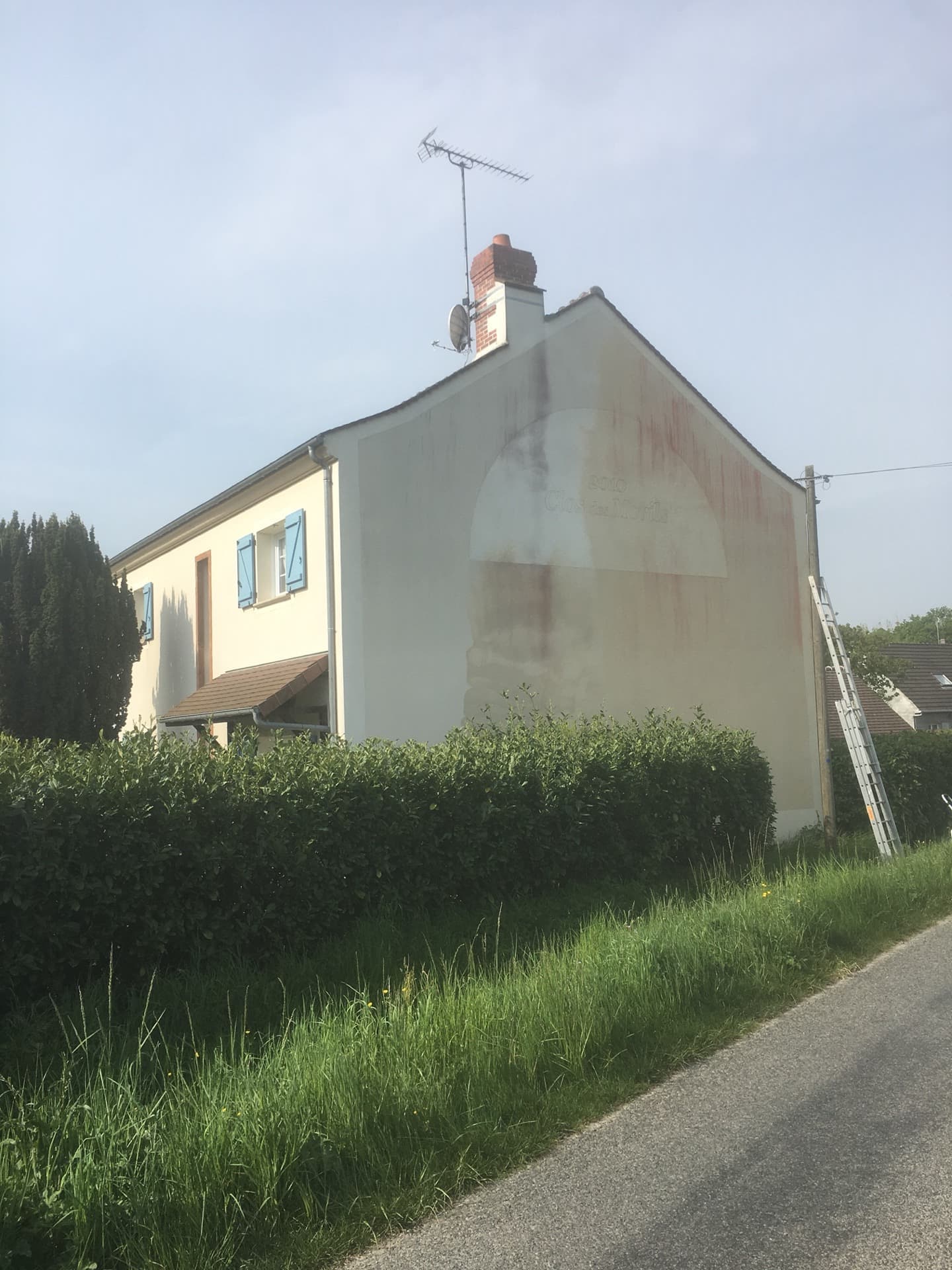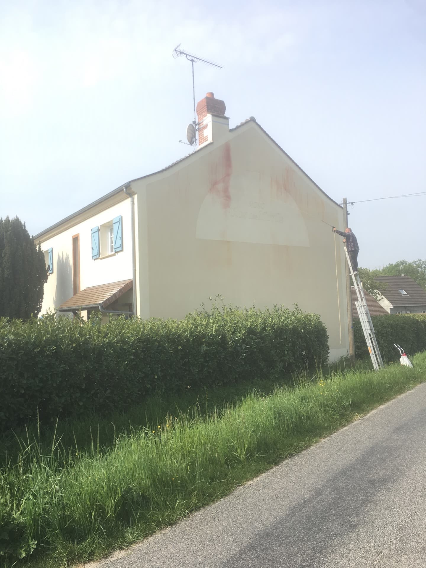 Intervention effectuée dans le Val-de-Marne sur cette propriété afin de remettre au propre la façade et ôter les traces de coulures rouges.